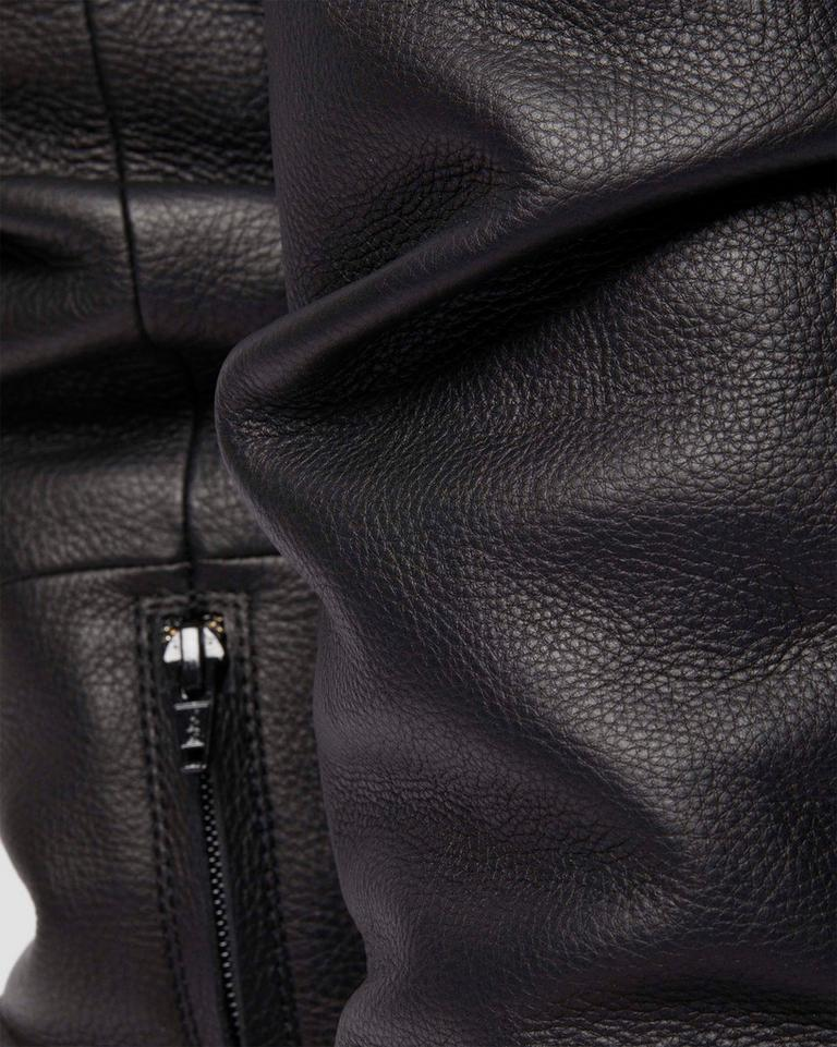 Crafted from supple, textured leather, they feature a relaxed slouchy shaft for a laid-back yet polished look. The chunky block heel and rugged platform sole add height and stability, while the signature contrast stitching lends a subtle statement detail. A convenient side zipper ensures easy on and off, making them perfect for everyday wear. Pair them with dresses, skirts, or skinny jeans for a versatile, confident style.